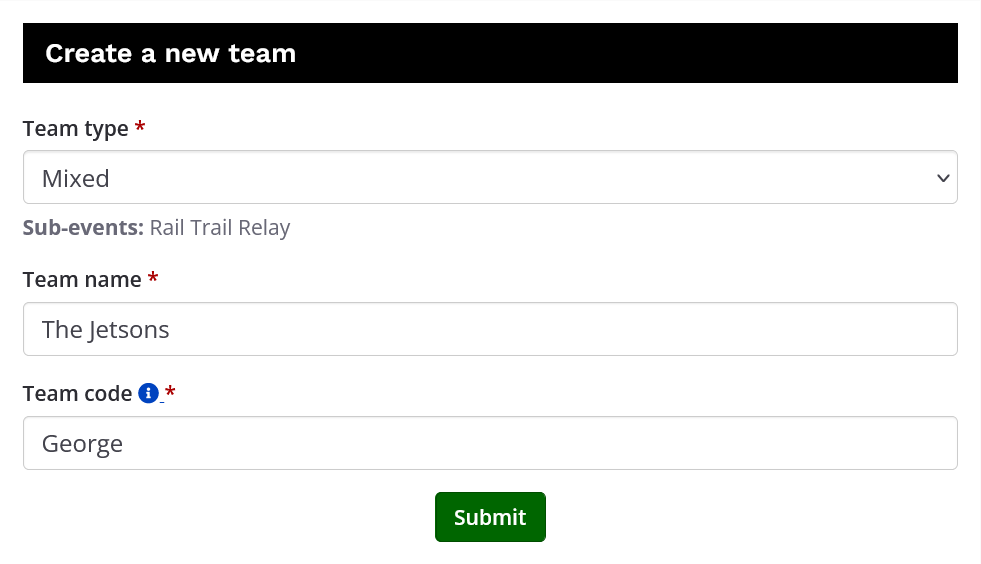 • After entering all the relevant information you will need to select the team which your team captain has created.