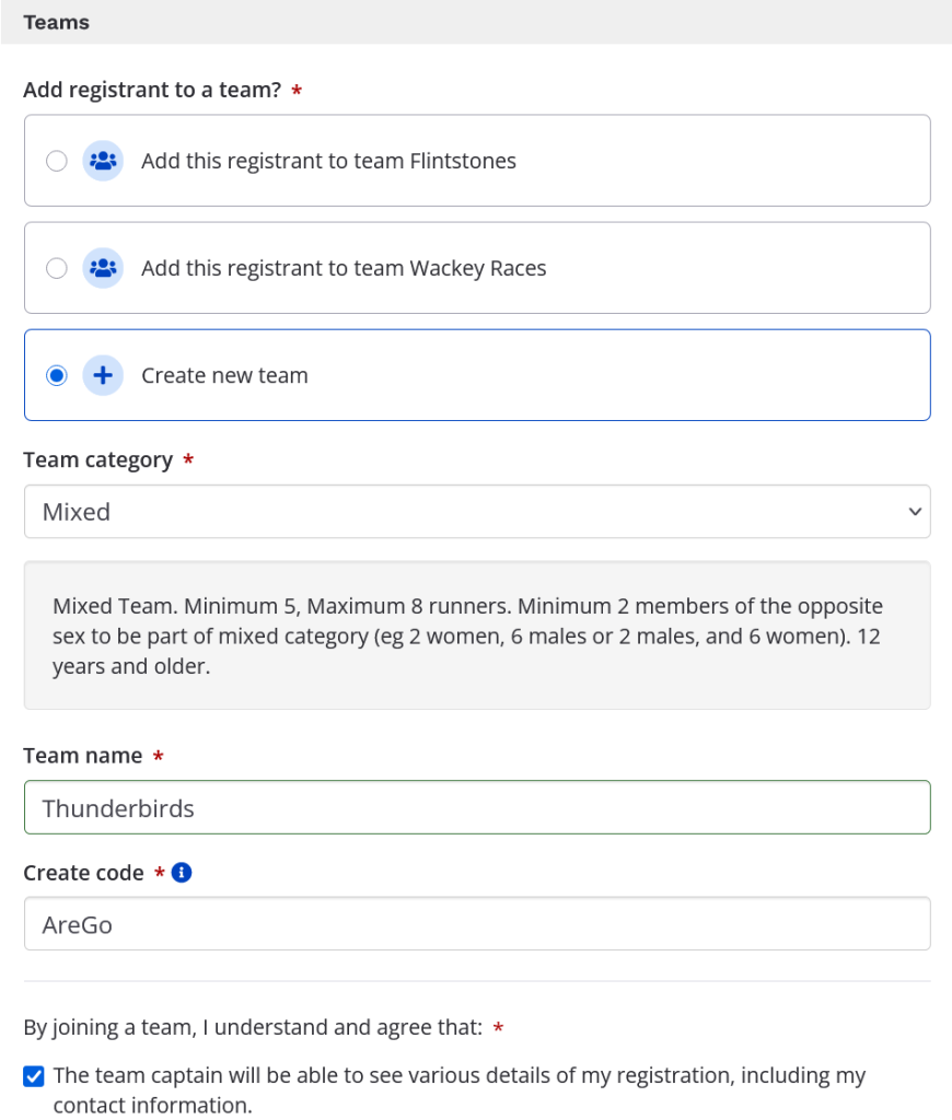 To create a team or join a team (must be 12 years and over)